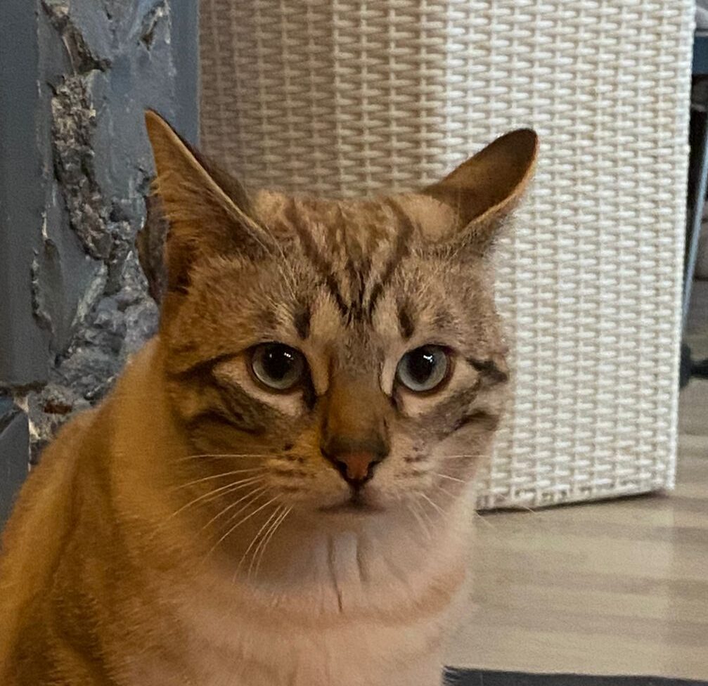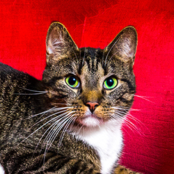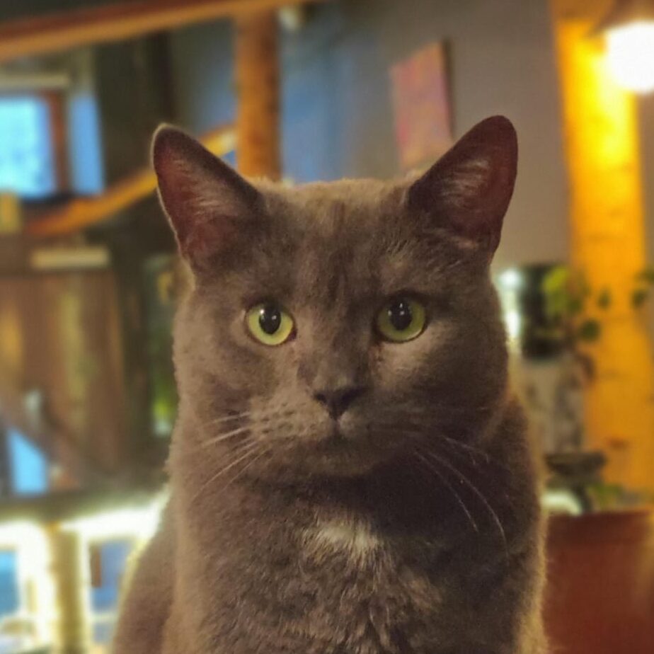 Ruskearaidallinen Nestori on paikan pomo ja määrää mm. kaikkien kissojen ruoka-ajat. Tämä puhelias herra pitää myös rapsutuksista. Nestori ja siskonsa Tyylilyyli ovat kahvilan vanhimmat kissat ja ovat asuneet täällä Helkatin perustamisesta saakka.