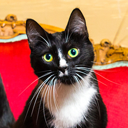 Felix on oranssi, pitkäkarvainen kisu jättitassujen kera. Hän on leikkisä, mutta dramaattinen. Felixin lempipaikka on siellä, missä tarjoilijoiden pitäisi kulkea. Kimeällä mau’ullaan Felix tervehtii sinua jo ovelta.
